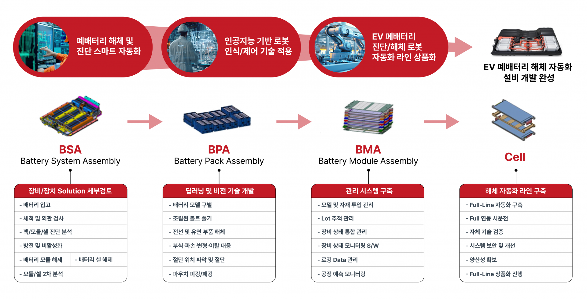 해체, 진단 로봇 자동화 라인 도입으로 안전사고 예방 및 비용 절감을 실현합니다.